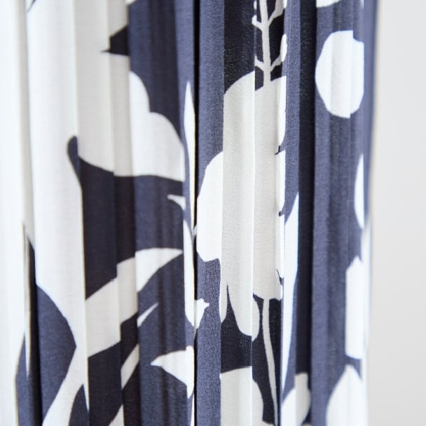 上品なネイビーベースにホワイトの花柄プリントが