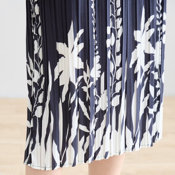 細かなプリーツが縦ラインを強調し、