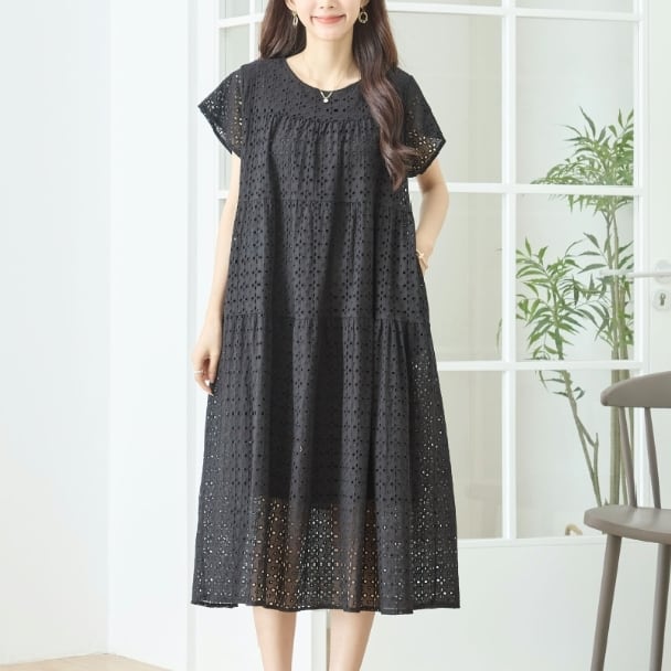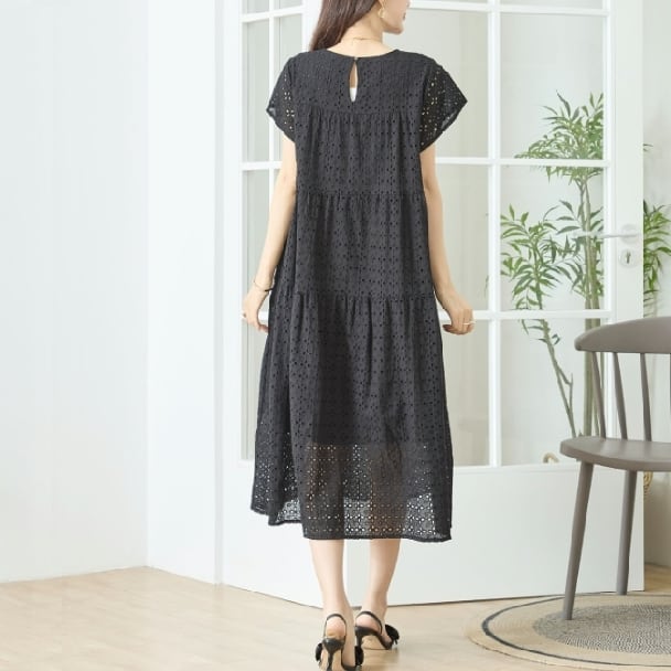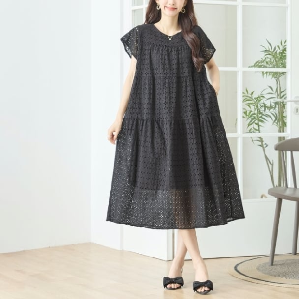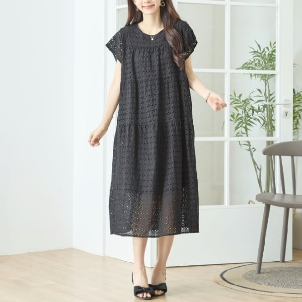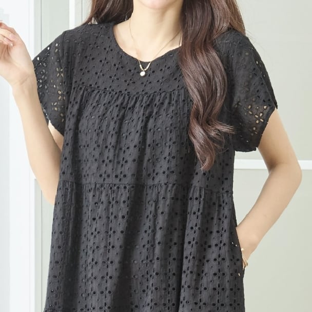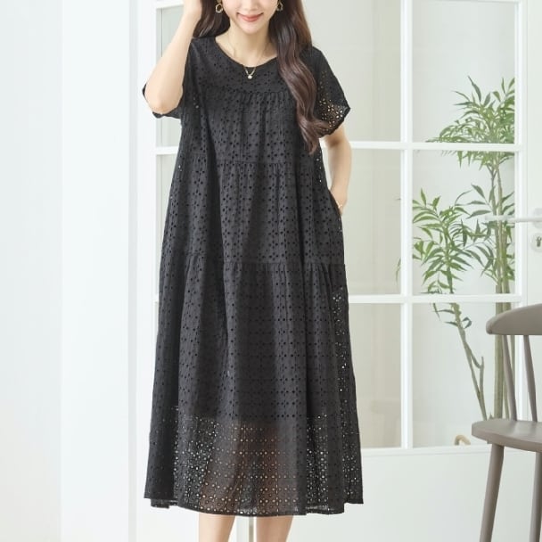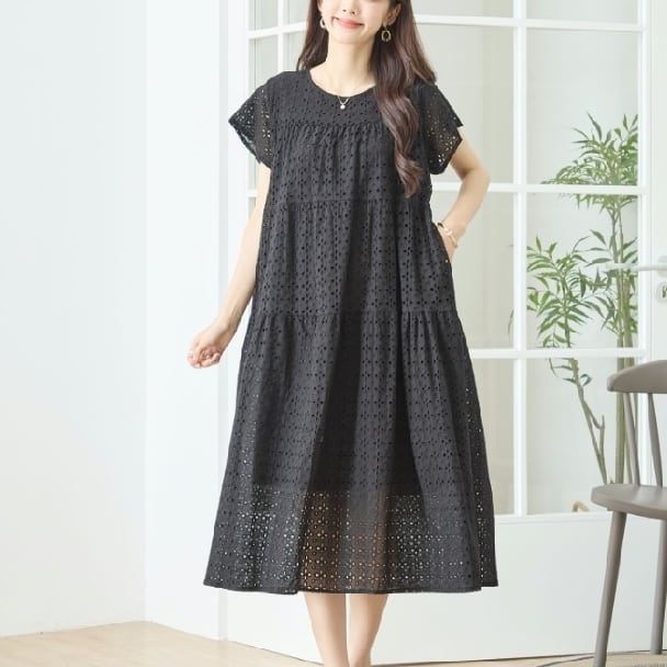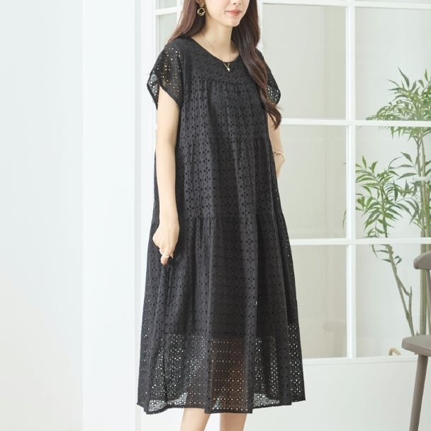 ティアードワンピース コットンレース 綿100% 裏地付き 半袖 フレアワンピース N82-566 amie studio M L エレガント 夏ワンピース 上品 大人きれいめ 春 秋 fmsd レディース 大人フェミニン 大人可愛い