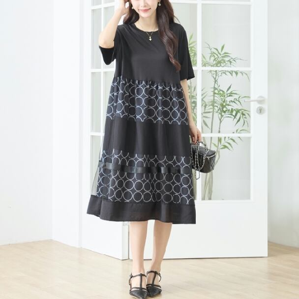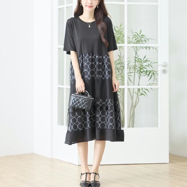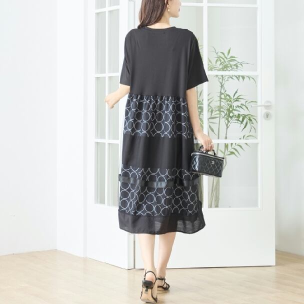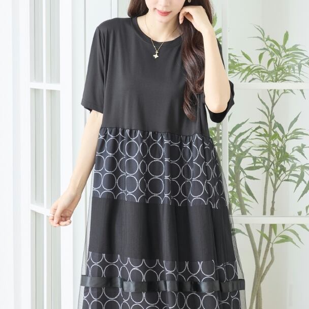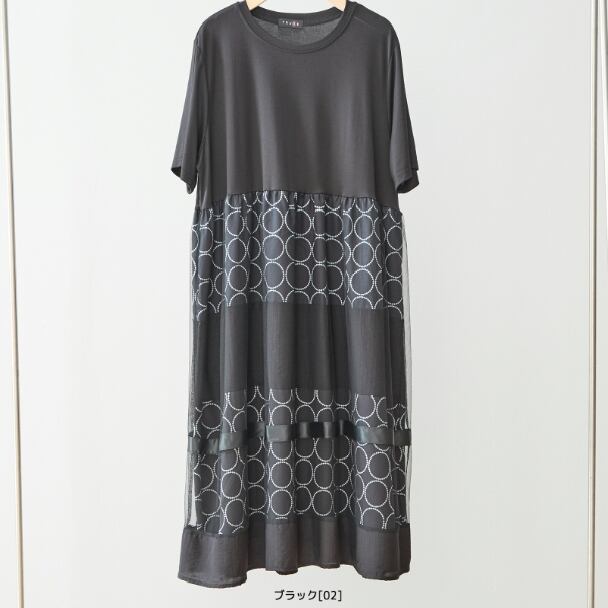ワンピース ドット 水玉 切替 チュール N82-490 TRUBE L LL エレガント 上品 大人きれいめ fmsd レディース 半袖 大人フェミニン 大人可愛いミセスキレイメ 普段着 おしゃれ着