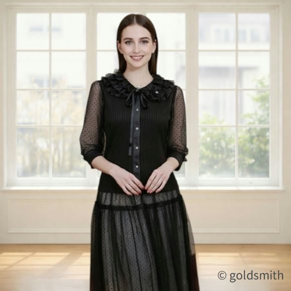透け感のあるドット柄がエレガントな雰囲気を演出。