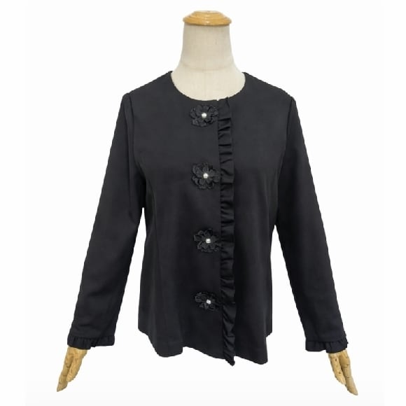 スーパービューティー ノーカラージャケット 花モチーフ付 ポンチ 2527022 上品 エレガント ブラック 2025年秋冬 オーラボー Super Beauty レディース アウター羽織り ミセス フォーマル 通勤 オケージョン