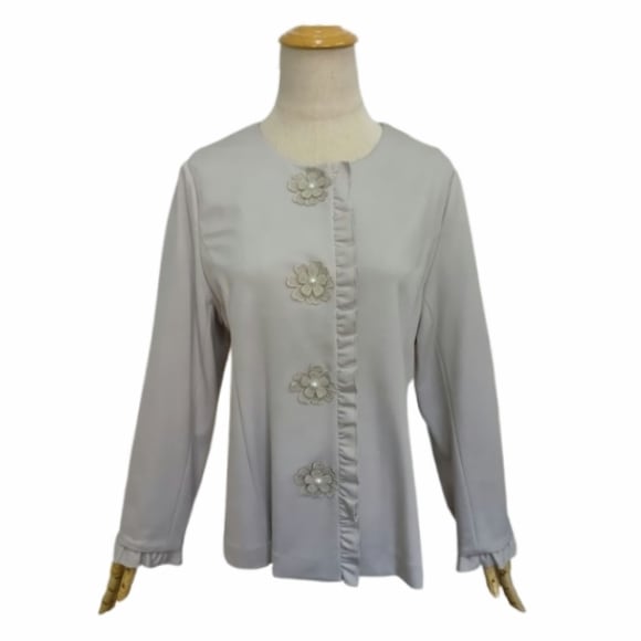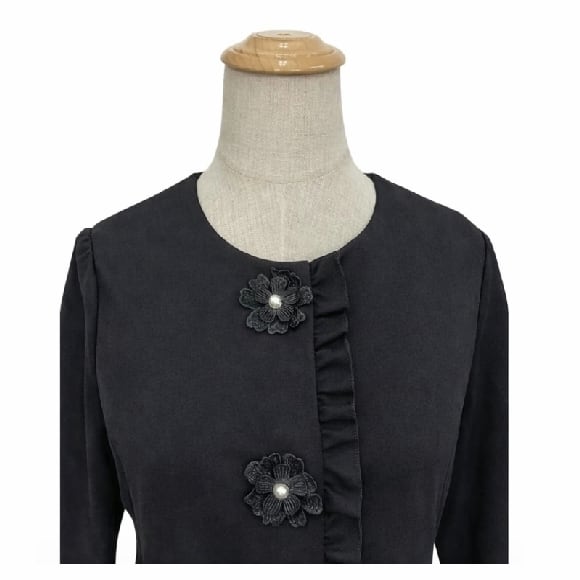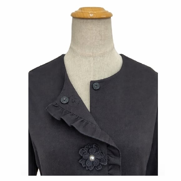 袖口にもフリルをあしらい、細部まで抜かりない一枚です。