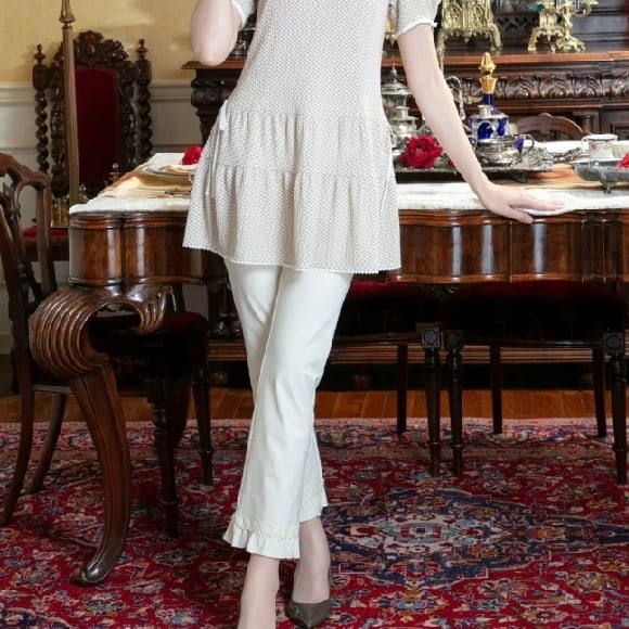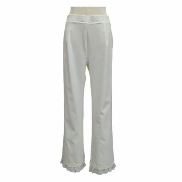 スーパービューティー パンツ 裾シフォン リボンモチーフ ハイテンション 2514002 ホワイト 2025年春夏 オーラボー 大人かわいい服 大人スタイル キレイメ Super Beauty レディース アパレル 女性 M L LL 30代 40代 50代 60代 洋服 服