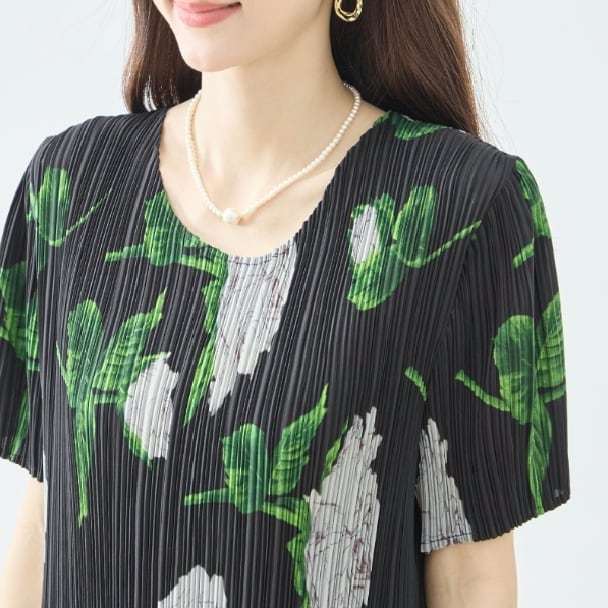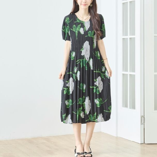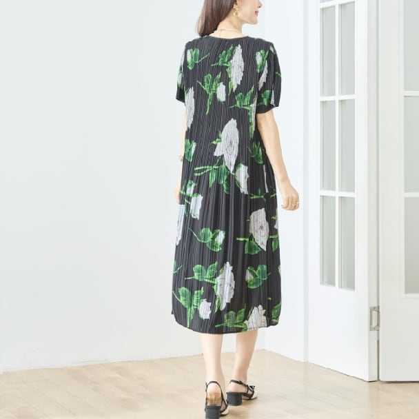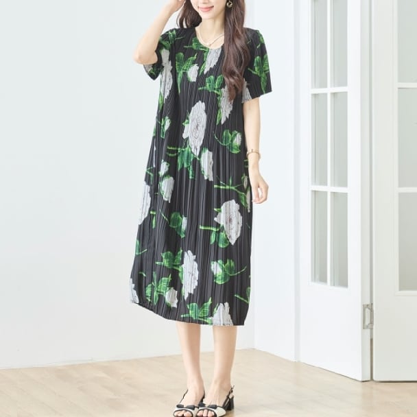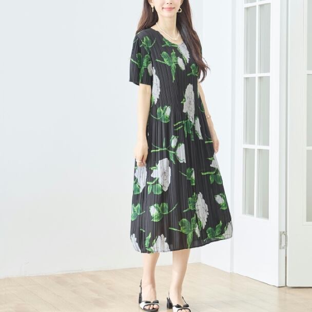 プリーツワンピース 花柄 N82-572 TRUBE M L エレガント 上品 大人きれいめ fmsd レディース 半袖 大人フェミニン 大人可愛いミセスキレイメ 普段着 おしゃれ着