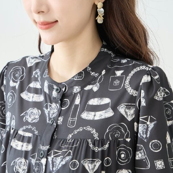 上品な総柄プリントが目を惹く、