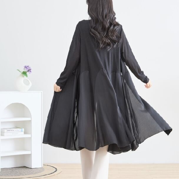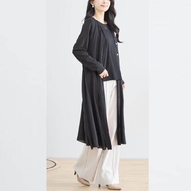 ロングカーディガン 切替フレアー シフォン 軽やか 羽織り 透け感 きれいめ フレア ロング丈 ゆったり きれいめ 大人可愛い C02-168 TRUBE L LL エレガント fmsd レディース 半袖 大人フェミニン 大人可愛い