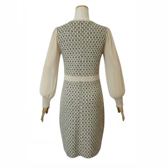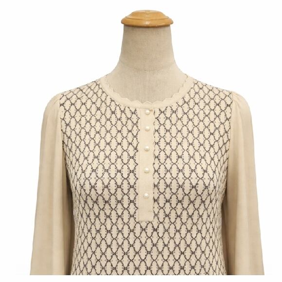 スーパービューティー ワンピース ジャガード編 袖パワーネット ニット 2521007 ベージュ 2025年秋冬 オーラボー Super Beauty 大人かわいい服 大人スタイル キレイメ レディース アパレル 女性 M L LL 30代 40代 50代 60代
