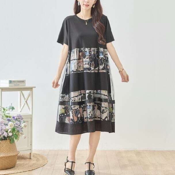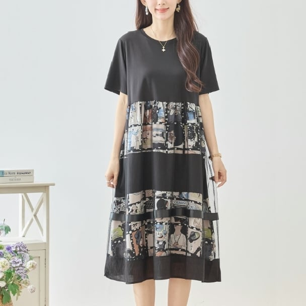 シネマ風フォトコラージュの切替ワンピース。