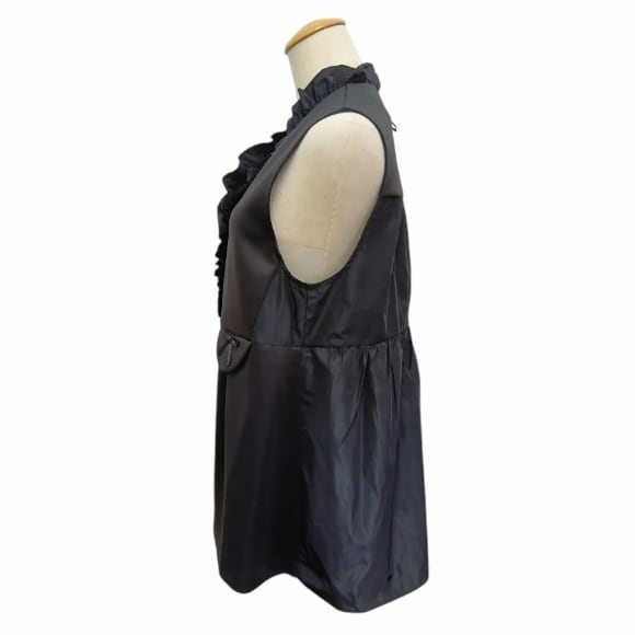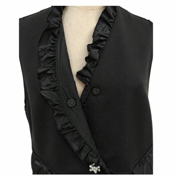 スーパービューティー ベスト フリル衿 Vネックデザインジレ 2527025 ブラック 異素材切替 ダンボールニット タフタ 2025年秋冬 オーラボー Super Beauty レディース きれいめ 上品 ミセス 40代 50代