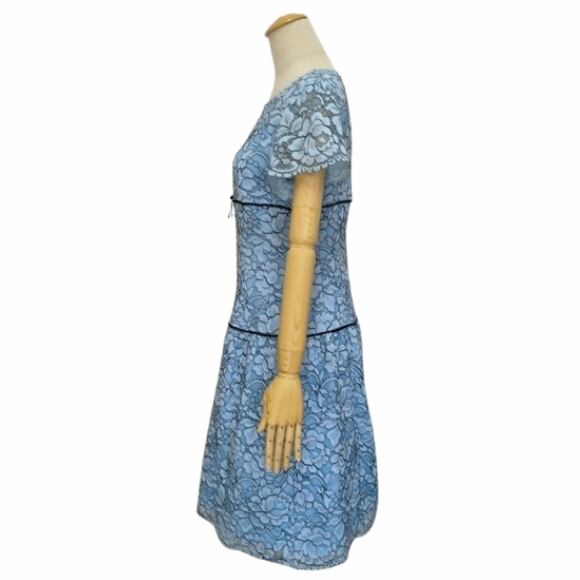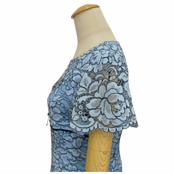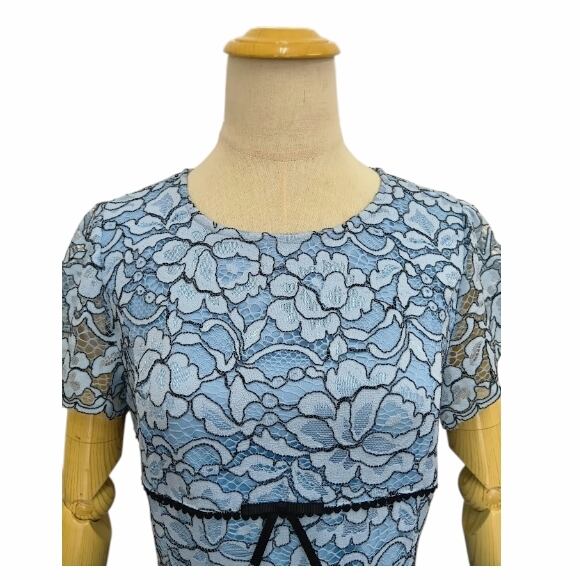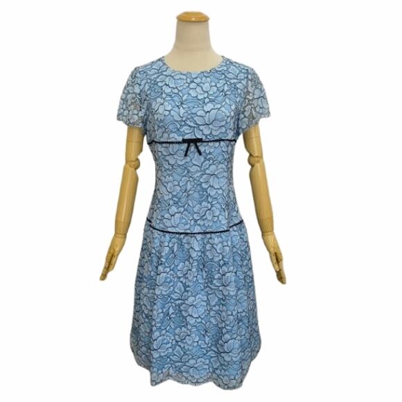 【10%OFFクーポンご利用可】スーパービューティー 半袖ワンピース ライン花レース素材 2616012 大人上品 きれいめ ミセス ブルー 2026年春夏 オーラボー Super Beauty レディース