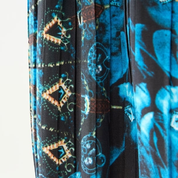 細やかなプリーツ加工が縦のラインを強調し、