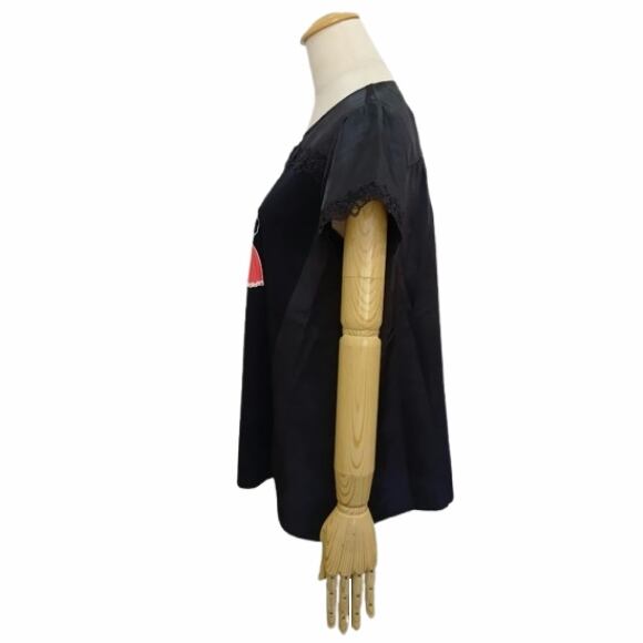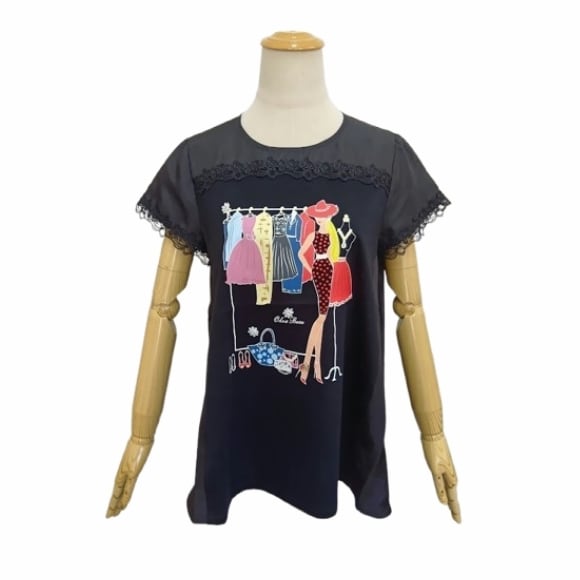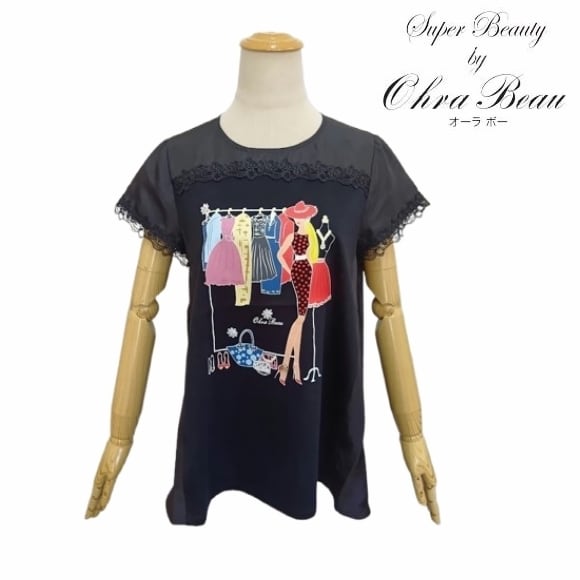 スーパービューティー チュニックTシャツ 異素材切替 ドレス柄 レース使い 2512034 ブラック 2025年春夏 オーラボー Super Beauty レディース 半袖 リボン きれいめ 上品 ミセス