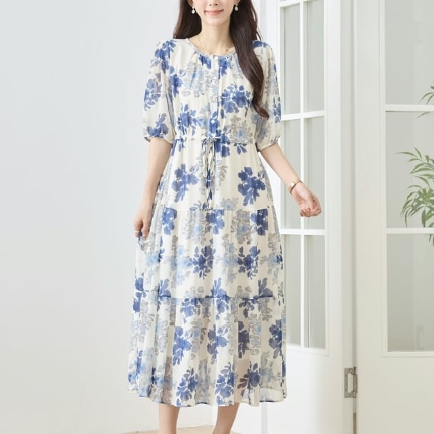 軽やかなシフォン素材に繊細なフラワープリントを施し、