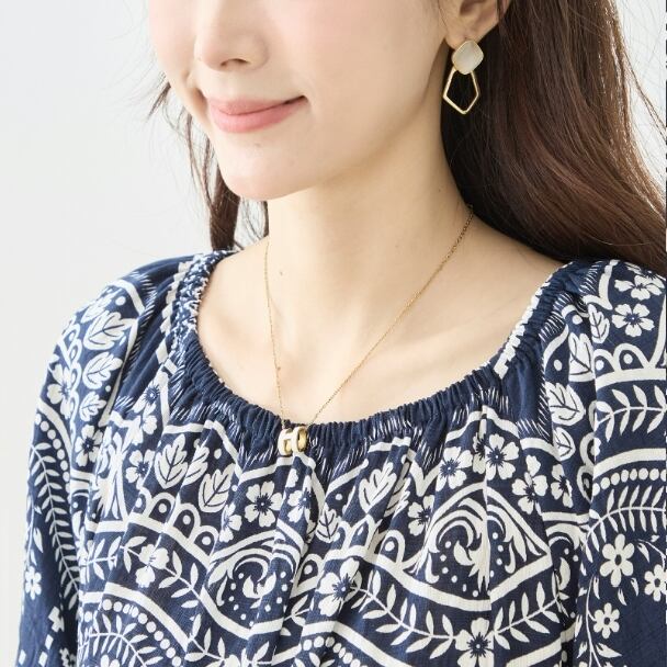 首元はギャザー仕様で柔らかな印象に。