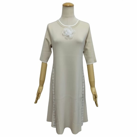 スーパービューティー ワンピース 胸元花モチーフ サイドレーステープ使い 2511019 ブラック 2025年春夏 オーラボー 大人かわいい服 大人スタイル キレイメ Super Beauty レディース アパレル 女性 M L LL 30代 40代 50代 60代