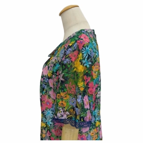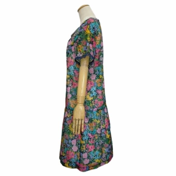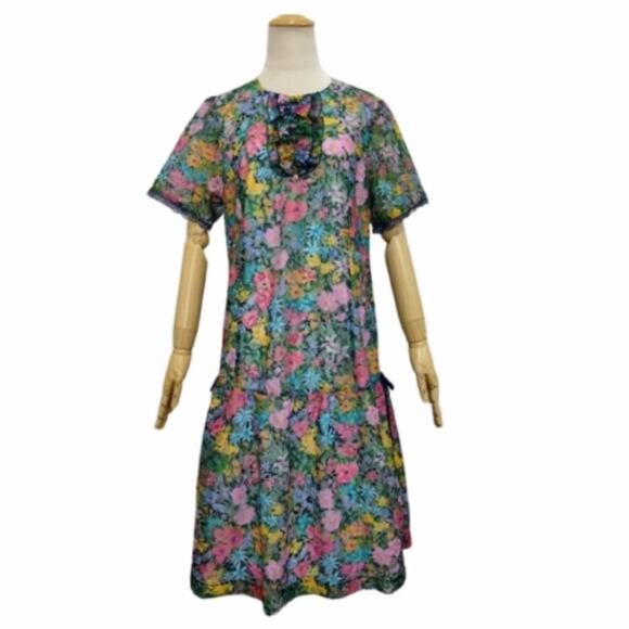 スーパービューティー ワンピース 胸元フリル マルチカラー レース 半袖 リボン付 カタログ掲載 2616021 ネイビー 2026年春夏 オーラボー Super Beauty ミセス 上品 エレガント レディース