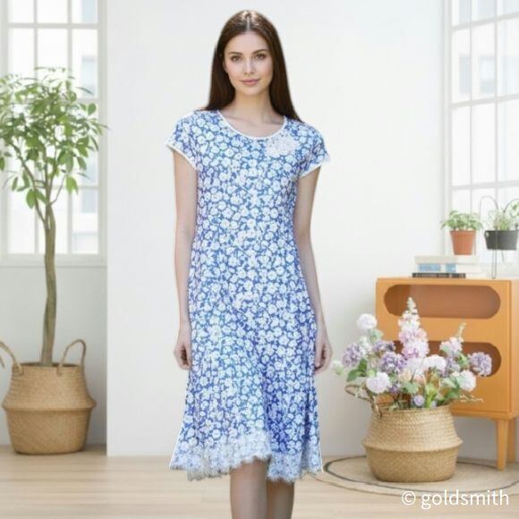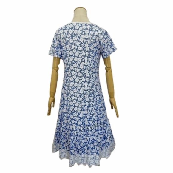 スーパービューティー ワンピース 裾レース ストレッチ 花柄 カタログ掲載 2616038 ブルー 2026年春夏 オーラボー Super Beauty ミセス 上品 エレガント レディース