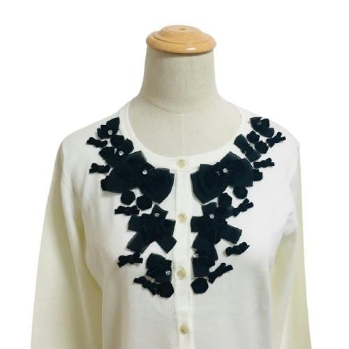 ギャラリービスコンティ 新品 胸元別珍リボンモチーフ使い ニットカーディガン オフ L ビスコンティ3 シミあり 1372928