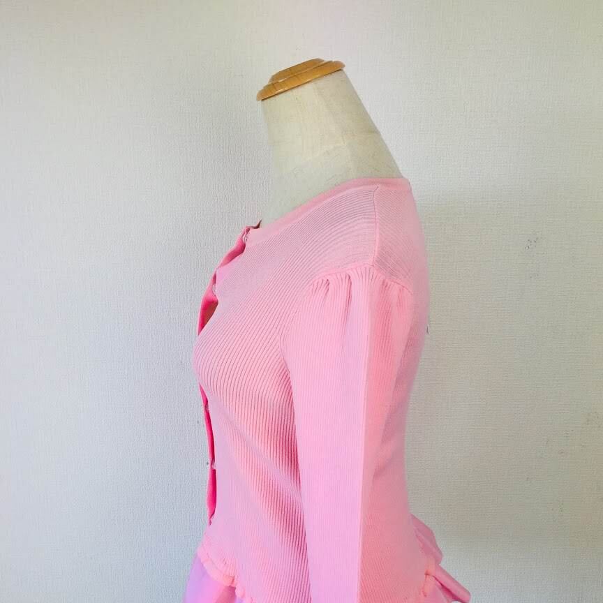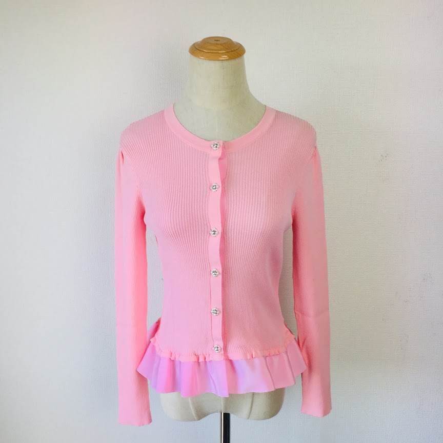 ギャラリービスコンティ 新品 パールフラワーのフリル裾カーディガン ピンク M 穴あり