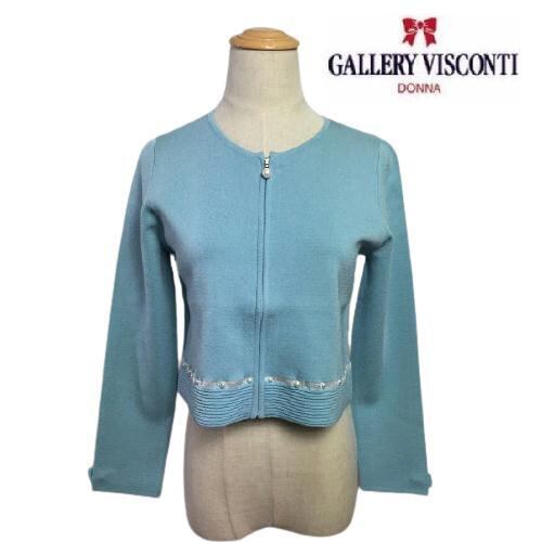 ギャラリービスコンティ 新品 ジップアップ ニットジャケット ブルー L ビスコンティ3 大人かわいい服 1122940