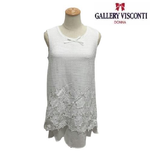 ギャラリービスコンティ 新品 レース使い重ね着風ノースリーブチュニック ホワイト M L ビスコンティ2 大人かわいい服 1270929