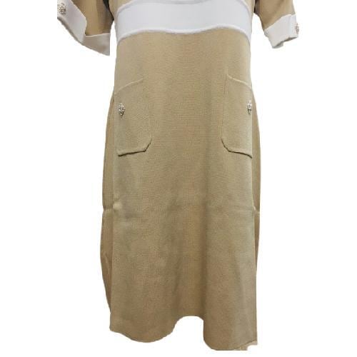 スーパービューティ Super Beauty 胸元カメリア バイカラーニットワンピース ベージュ M L 40 42 大人かわいい服 2111018