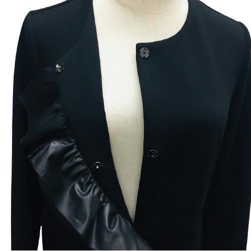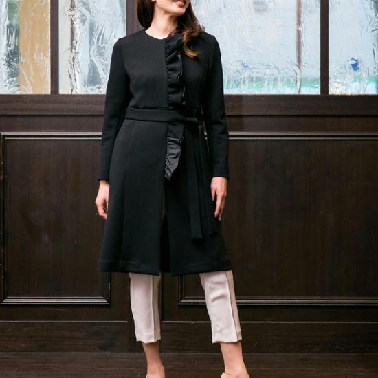 【Pont Neuf ポンヌフ 新品】ギャザーフリル トリムが華やかなコート ブラック BA1006 M L 新品 働く女子 通勤コーデ 大人可愛いコーディネート