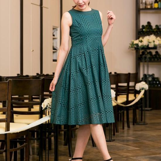 【Pont Neuf ポンヌフ 新品】コットンエンブロイダリーレース ワンピース グリーン BA1020 働く女子 通勤コーデ 大人可愛いコーディネート