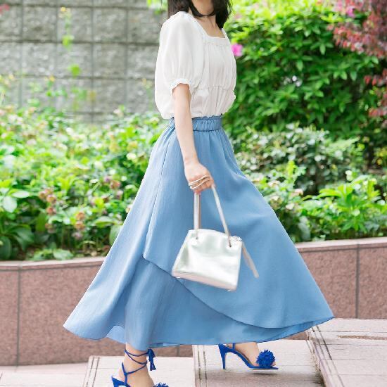 【Pont Neuf ポンヌフ 新品】ロング丈 フレアスカート フレンチブルー アンリ BA1057