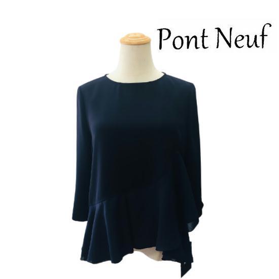 【Pont Neuf ポンヌフ 新品】上品なラッフルフリル カットソー ネイビー サイズ2 M L BJ3081