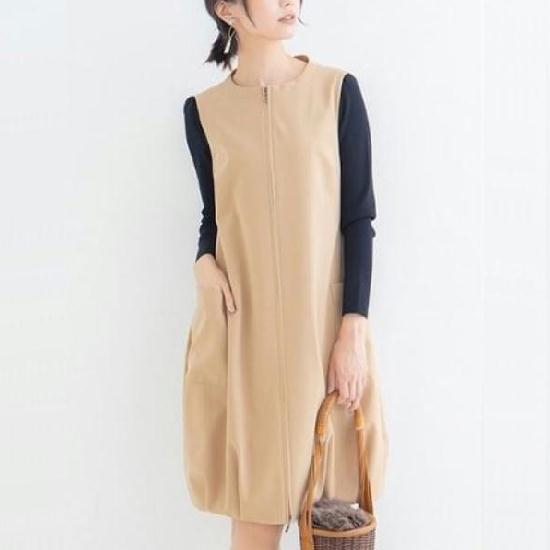 【Pont Neuf ポンヌフ 新品】バルーン裾ダブルジップワンピース M サイズ1 キャメル ジェニック BJ3032
