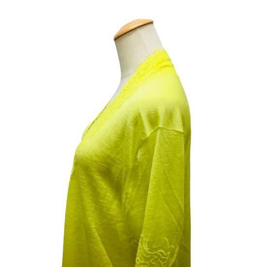 スーパービューティ Super Beauty 麻素材ロングカーディガン イエロー LL 44 新品 1911034 大人かわいい服