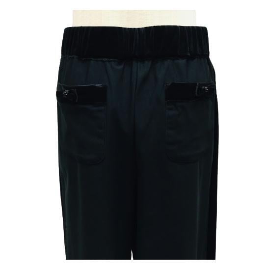 スーパービューティー パンツ Super Beauty サイド別珍切替ライン入り リボンモチーフ ワイドパンツ ブラック M L LL 新品 2124006 大人かわいい服