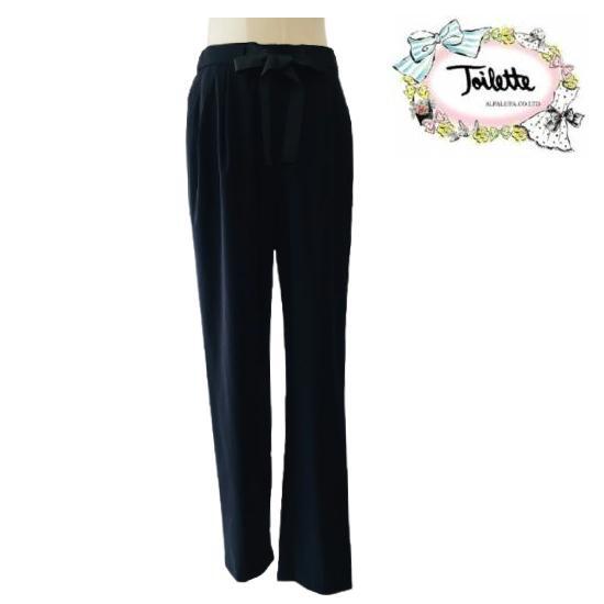 【トワレ toilette 新品】股上深めで履きやすい ストレッチパンツ ブラック 7号 9号 大人かわいい服 ディリーウェアー 495-035