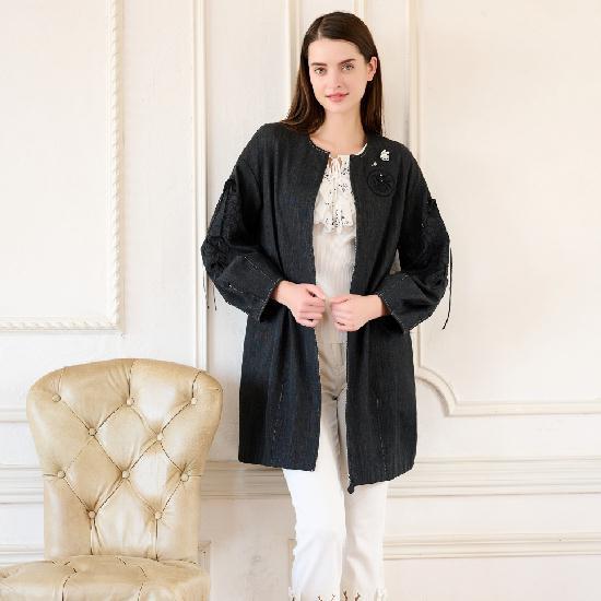 スーパービューティー Super Beauty ストレッチデニムノーカラーバルーンジャケット 春夏 L LL 42 スーパービューティー44 大人かわいい服 2217002