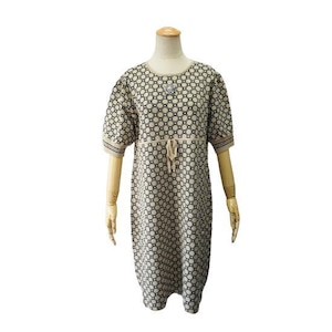 スーパービューティー Super Beauty 花柄ジャガード半袖 ニットワンピース ベージュ LL 44 大人かわいい服 2211021