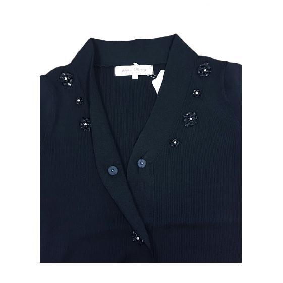 スーパービューティー Super Beauty 飾りボタン 花ビジュー ロングカーディガン ブラック M スーパービューティー40 大人かわいい服 2211023