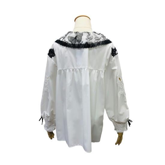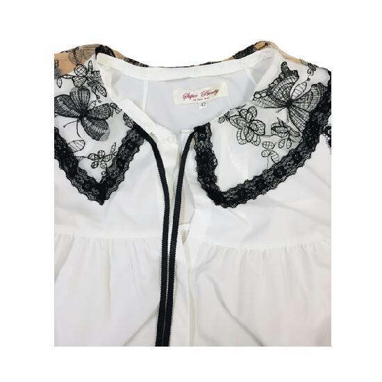 ブラウスの肩部分にレースデザインがエレガントです。