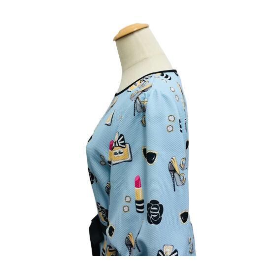 スーパービューティー Super Beauty 香水&リッププリント ワンピース ブルー L LL 42 44 大人かわいい服 2216004