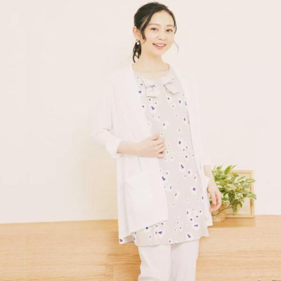 【Pont Neuf エクラタン】 お袖のリボンがかわいい 伸縮カーディガン ホワイト L 3号 大人かわいい服 ec222032