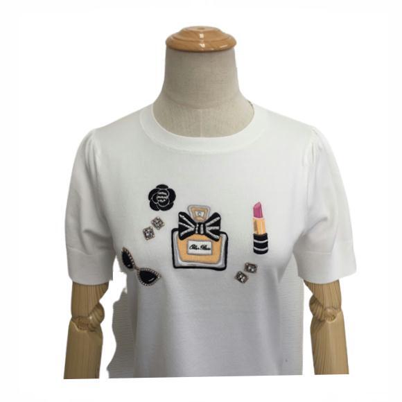 スーパービューティー セーター 半袖ニット 香水 口紅 ニット ホワイト M L LL Super Beauty 30代 40代 50代 60代 大人かわいい服 2211008