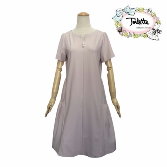 【トワレ toilette 新品】パール付き ティアード半袖 ワンピース ピンク M L 大人かわいい服 ディリーウェアー 323-153