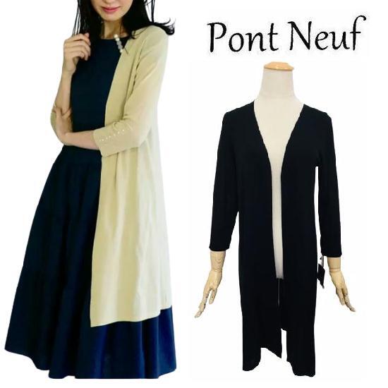【Pont Neuf ポンヌフ 新品】袖パール使いロングカーディガン ブラック L サイズ2 BB1082 働く女子 通勤コーデ 大人可愛いコーディネート