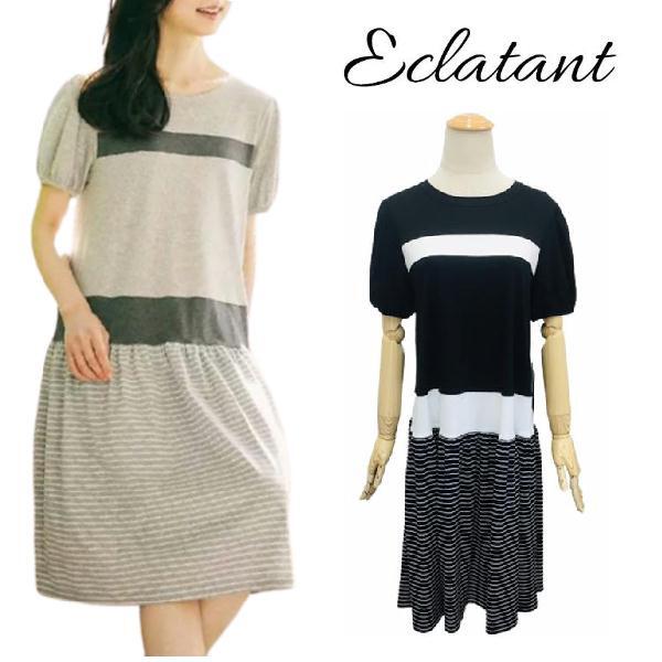 【Pont Neuf エクラタン】 ワンピース ボーダー コットン M L 大人かわいい服 30代 40代 50代 60代 ec222026