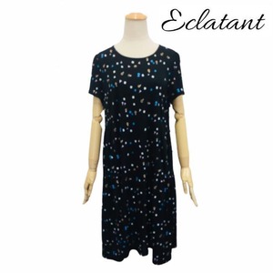 【Pont Neuf エクラタン】ワンピース ストレッチ Aライン 可愛いプリント ブラック M L 大人かわいい服 30代 40代 50代 60代 ec222037