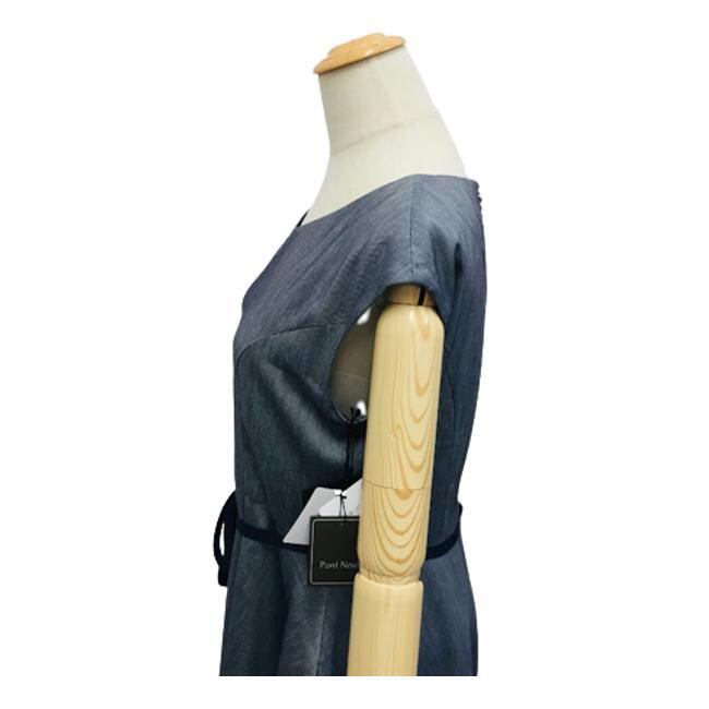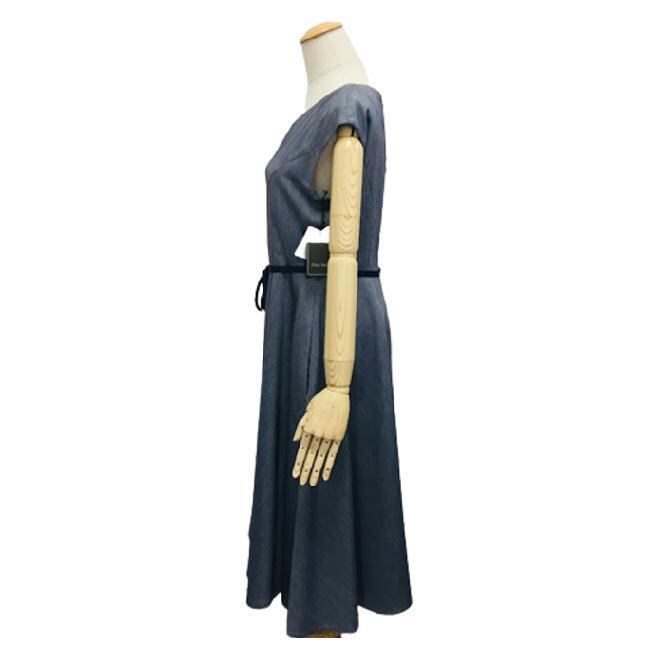 【Pont Neuf ポンヌフ 新品】ふんわり広がるシルエットのフレアーワンピース ネイビー M L ダミエ 働く女子 通勤コーデ 大人可愛いコーディネートBB1033