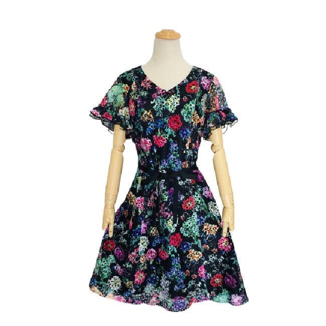 スーパービューティー ワンピース 半袖 Super Beauty レース 花プリント リボンモチーフ M L LL 大人かわいい服 2216019