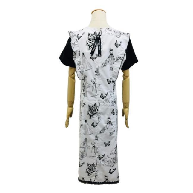 スーパービューティー ワンピース 春夏 Super Beauty モノトーン ドレスプリント 袖切替 ホワイト M L LL 大人かわいい服 2216030