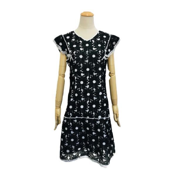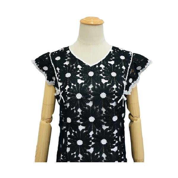 スーパービューティー ワンピース Super Beauty モノトーンフラワーレース ワンピース ブラック M L LL 大人かわいい服 2216018